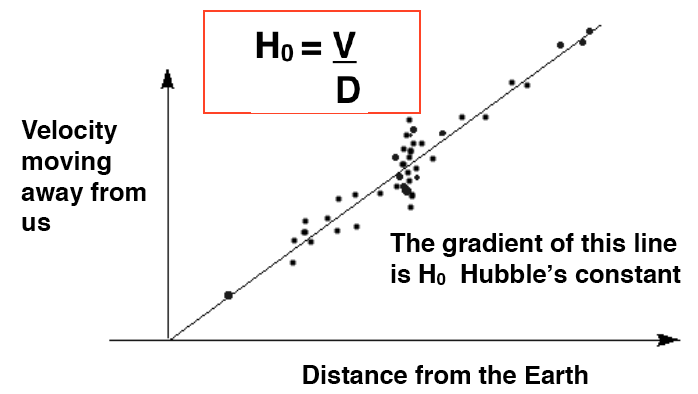 The gradient of the line of the graph above is V/T which is Hubble's constant