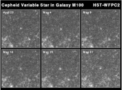 The astronomer Henrietta Swan Leavitt discovered that there was a connection between the pulse rate of the Cepheids and the brightness or absolute magnitude. This discovery enabled these stars to be used for distance measurement. In particular Edwin Hubble used the idea to estimate the distances of galaxies containing Cepheids in his formulation of “Hubble’s Law”.