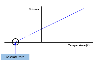 As a gas is cooled the molecules move more and more slowly and the volume falls, still following a straight line. If that continues there must be, in theory at least, a point at which the molecules stop altogether.