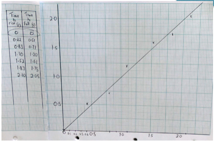 When drawing linear graphs by hand arrange a simple scale to use most of the graph paper (a small graph will be less accurate but don't make the scale complicated to work out) and draw the line as close to as many points as possible without distorting the straight line.
