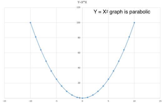 The connection Y proportional to X squared is another common connection in physics equations. For example Kinetic energy = 1/2 mass x velocity squared (KE= 1/2mv2) and Einsteins famous equation E=mc2