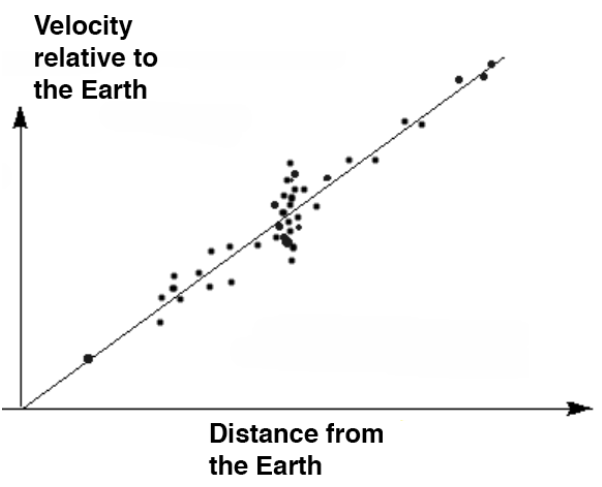 The graph below, plotting the velocity against distance from Earth, is a straight line, showing that the two are directly proportional. The gradient of the graph is constant and that value is called Ho - Hubble’s constant, so: