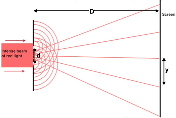 To calculate the wavelength we would have to measure the distance between the two slits (d) the distance from the slits to the screen (D) and the distance between two points of reinforcement on the screen(y). That is two bright lines. The wavelength would then be: dy/D. Below there is a more complete explanation in the form of a video lesson.