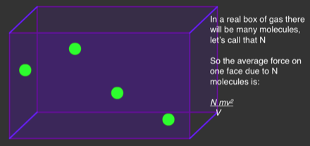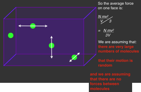but the molecules to not just travel right to left but in all three dimensions and we assume that there are so many molecules and that there motion is random that the vector sum of there velocities in any one direction is the same as in any other.