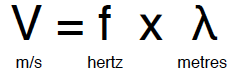 f is the frequency of the wave, that is the number of waves which are produced every second (or the number passing every second). This number is given the unit “hertz”. One hertz is one wave per second.