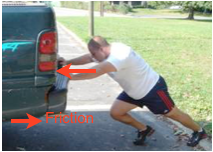 Even though this truck is being pushed hard, it is not moving because friction is acting. The forces are balanced.