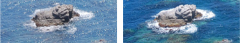If a polaroid filter is turned so that most of this directly reflected light is cut out then glare is reduced. A polaroid filter is often used in photography to cut out glare and improve the contrast in a photograph. With a filter the reflection from the surface of the ice is bright and lacks detail. In the second frame the exposure on the rough ground looks much the same but there is more detail on the ice.