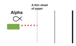 Alpha radiation is absorbed by 20 to 50 mm of air or a thin sheet of paper. Alpha particles are relatively large.