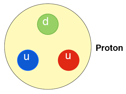 is made from two up quarks, charge +2/3 and one down quark, charge -1/3. The total charge is therefore 2/3 + 2/3 -1/3 = +1