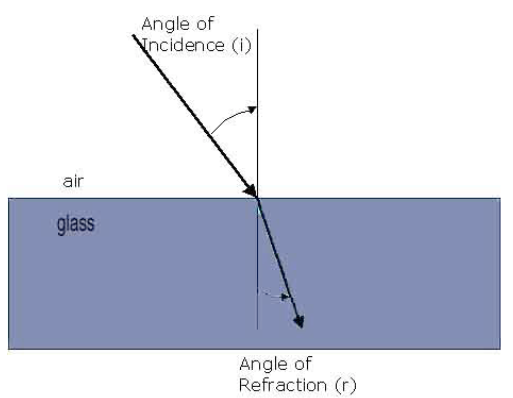 sin i/sin r = ng /na= speed of light in air/speed of light in glass
