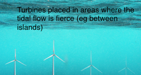 We can also place turbines on the sea bed in areas of strong tidal flow, for example between islands.