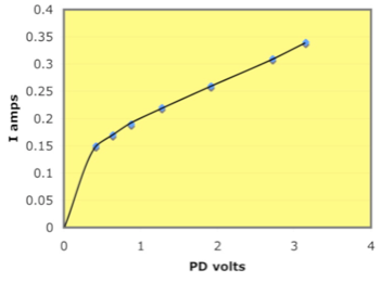 The graph of current against resistance is curved because the PD (voltage) rises at a faster rate than the current. As the filament gets hot the metal atoms vibrate and the outer electrons of the atoms become more excited. The flow of electrons carrying the current is impeded by collisions with the excited electrons, therefore raising the resistance.