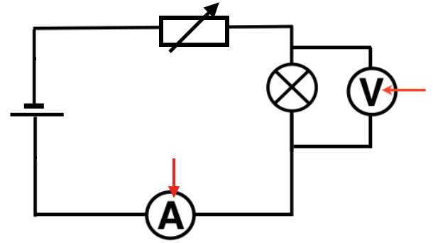 We test the resistance of the bulb, as we would test any resistance, in a circuit like this: