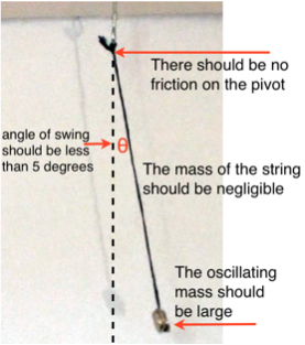 Although commonly used in the teaching of simple harmonic motion a swinging pendulum does not perfectly fit the conditions for SHM. However, if we are careful, a swinging pendulum moves in very nearly simple harmonic motion. The angle of swing must be small, best under 5 degrees. The mass must be large compared to the mass of the string/wire.