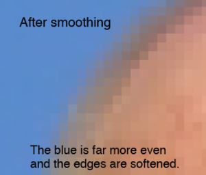Within any picture a few of the pixels will be“wrong”. There will be errors in the recording. For example this blue pixel is darker than the others around it. We can reduce these by smoothing.