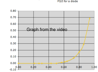 The diode only conducts well (the resistance is low) only when the PD increases above about 0.7 volts