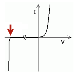 If we test a diode by applying a gradually increasing potential difference and measuring the current flow then we find that the diode does not obey Ohm’s Law, if it did this graph line would be straight.
