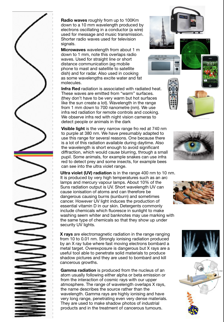 The descriptions work down from the longest waves to the shortest. There is a PDF copy of the main notes which is easy to download and print.