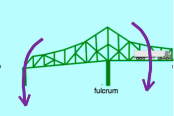 The weight of the lorry on this half of the bridge causes it to turn around the support. The force required to secure the bridge can be calculated using the law equating the clockwise and anticlockwise moments.